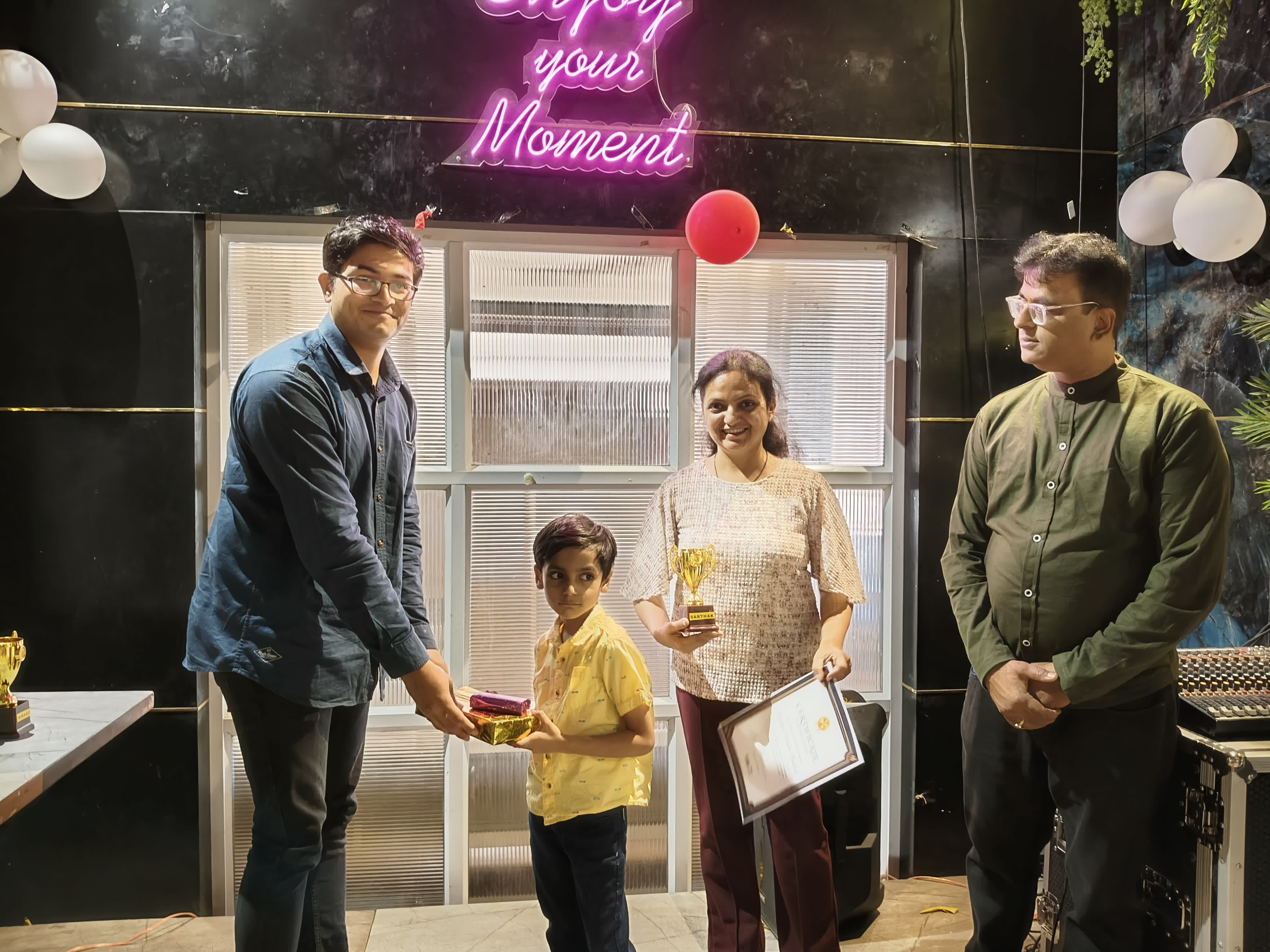 - Awards & Recognition: In a special ceremony, TULSite children—Mahi Minakshi Harish Kharche, Sarthak Sunita Shailesh Sawant, and Niraag Nisha Anurag Singh—were honored with trophies, certificates of appreciation, and memorable gifts to celebrate their achievements. The panel of judges—Rahul, Navnath, Rigved, and Jayesh—played a pivotal role in encouraging and recognizing the talents of the young achievers.
