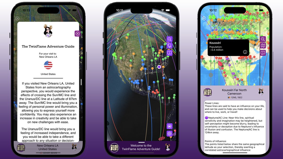 Atlanta, Georgia Jul 29, 2023 (Issuewire.com) - TwinFlame Development, LLC, creators of the leading app in innovative astrological solutions, today announced the global release of its new feature, the TwinFlame Adventure Guide. This innovative addition to the TwinFlame app family brings the intricate world of astrocartography, also known as location astrology, to life on both iOS and Android platforms, marrying the thrill of worldly travels with the depth of celestial influences.