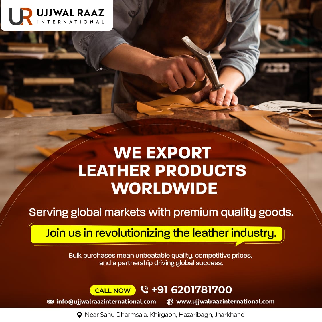Ujjwal Raaz International is a pioneering leather goods manufacturer and exporter based in Jharkhand, India. Founded with the vision to merge traditional Indian craftsmanship with contemporary design, the company offers a broad range of high-quality leather products for the global B2B market. Committed to excellence and innovation, Ujjwal Raaz is your trusted partner for premium leather goods.