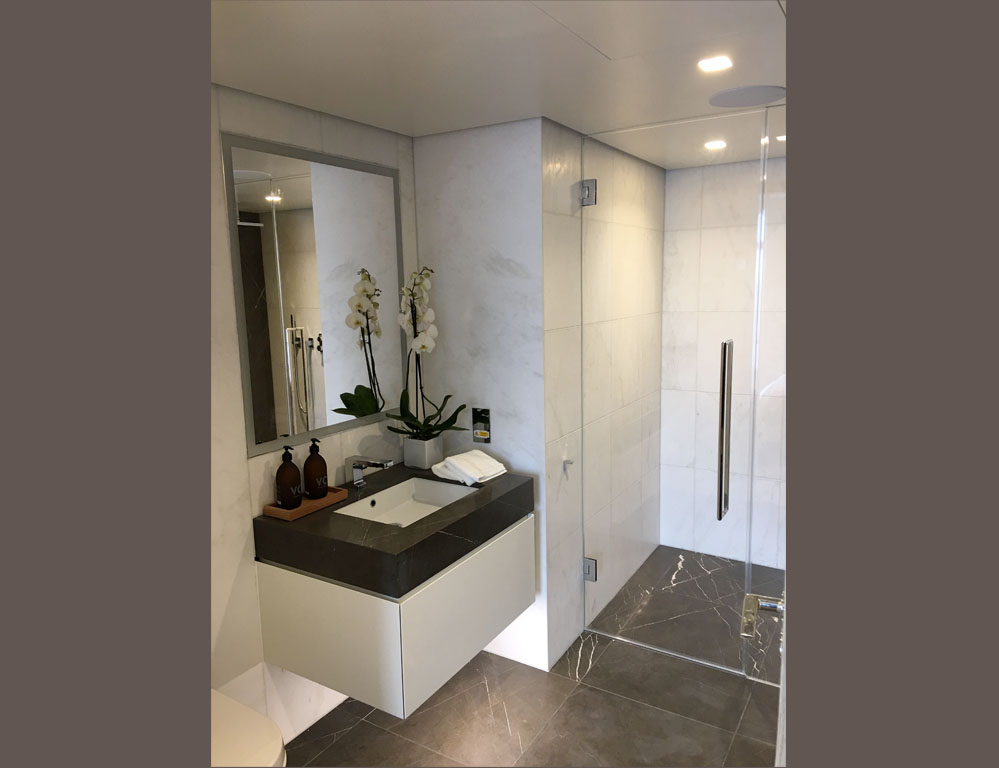 The range of bespoke LED mirrors and shower doors complimented the lavish bathroom interiors throughout the building, in terms of aesthetics and functionality.