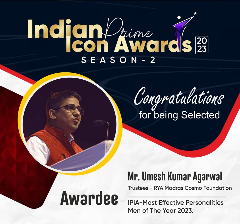 Chennai, Tamil Nadu Jun 12, 2023 (Issuewire.com) - Umesh Kumar Agarwal has been acknowledged for his outstanding dedication and invaluable contributions to the RYA Madras Cosmo Foundation, a renowned organization committed to providing affordable and quality medical care to underprivileged communities. As the Foundation Secretary, Agarwal has played a pivotal role in driving the success of various programs and initiatives aimed at improving healthcare access and infrastructure.