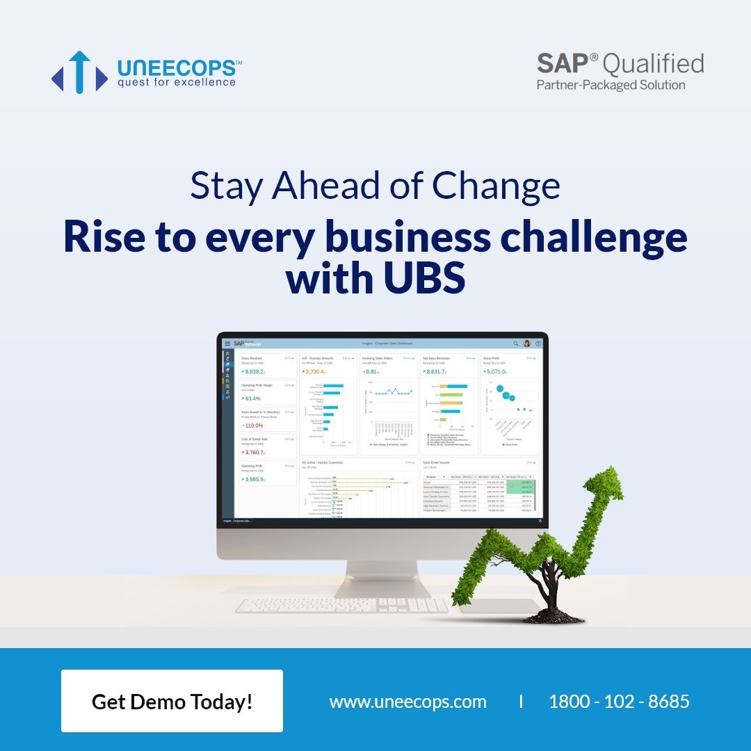Uneecops Business Solutions is a part of the Uneecops Group. It is a CMMI Level 5 company with leading capabilities in transforming and simplifying the complex business landscape of fast-growing SMEs, and mid-market businesses. The Group is guided by its purpose of addressing the mission-critical needs of businesses with ERP, Salesforce, Analytics and Cloud Technologies. Being India’s #1 Platinum Partner, UBS helps more and more businesses transform into intelligent enterprises with customized SAP Business One, SAP Business ByDesign, SAP S/4HANA Cloud ERP Solutions.