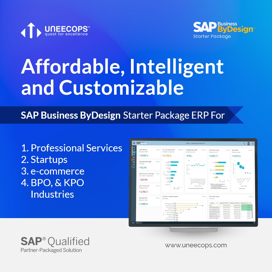 Our Senior Manager – Uneecops Business Solutions, shares that “The SAP Qualified Partner-Packaged Solution Business ByDesign Starter Package includes an integrated cloud ERP platform that can streamline all business functions, from accounting to sales, distribution and more. It gives a 360-degree view of your business - with complete scalability and affordability.”