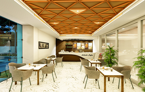 Smart Recreation: An 85,000 ft Signature Club with indoor sports, restaurants & bars, a grocery store & 45 luxury rooms for guests