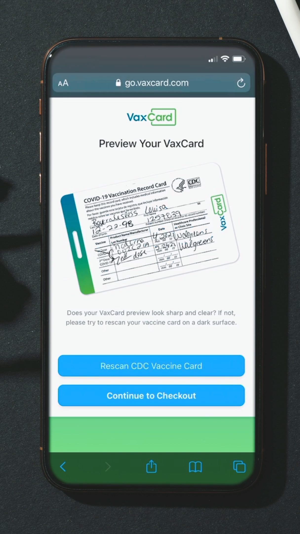 Ordering a VaxCard is a quick and easy process that can be completed using any smartphone with a camera. Customers can submit a picture of their original vaccination card through VaxCard's secure scanning tool, preview the VaxCard, and complete the purchase online. The card will be delivered by mail within two weeks.