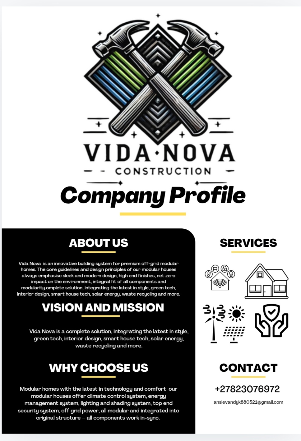 Vida Nova Construction vidanovaconstruction@atomicmail.io +27823076972 https://www.crunchbase.com/organization/vida-nova-construction