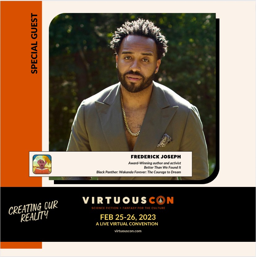 New York Times Best Selling author and activist, FREDERICK JOSEPH (The Black Friend, Black Panther: Wakanda Forever The Courage to Dream) and Scholar and Pop Culture commentator, ASHLEY SMALLS, headline a stunning lineup of authors and intellectuals discussing the intersection of Black culture, social commentary, and social media and how they advance or hinder our perception of Black identity.