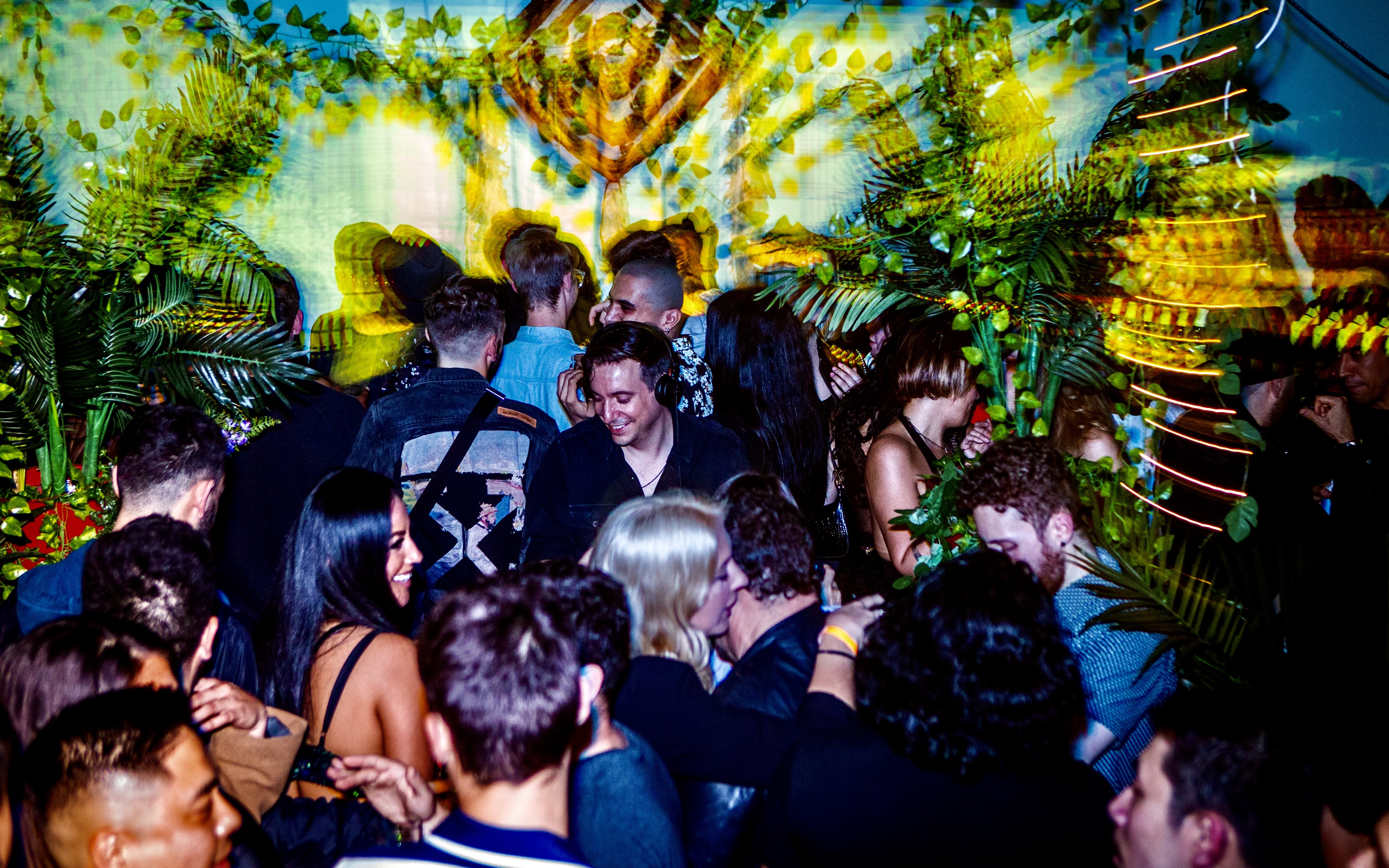 VR World immerses visitors in a seductive and ever-changing spectacle of digital romance. Once we’re in the space we’re human, but also somehow more - experiencing the sensation of full technological immersion where we become the very avatars we have only ever before been able to experience on the flatness of the screen. Somehow, we get to experience the best of both worlds - the relaxed state of physical relief from the common sensory realities of the city and everyday life outside, but newly excited by the hypnotic, swaying, chromatic pixilation of a new form of human+digital experience.