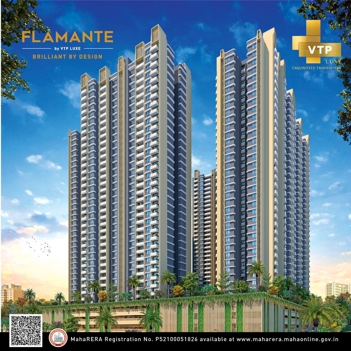 VTP Flamante is a meticulously designed residential project developed by VTP Realty, a renowned name in the real estate industry. This project is strategically located in Kharadi, one of the most sought-after residential areas in Pune, India. Spanning across a sprawling land area, It offers a harmonious blend of luxurious living and contemporary design, ensuring a superior lifestyle experience for its residents.