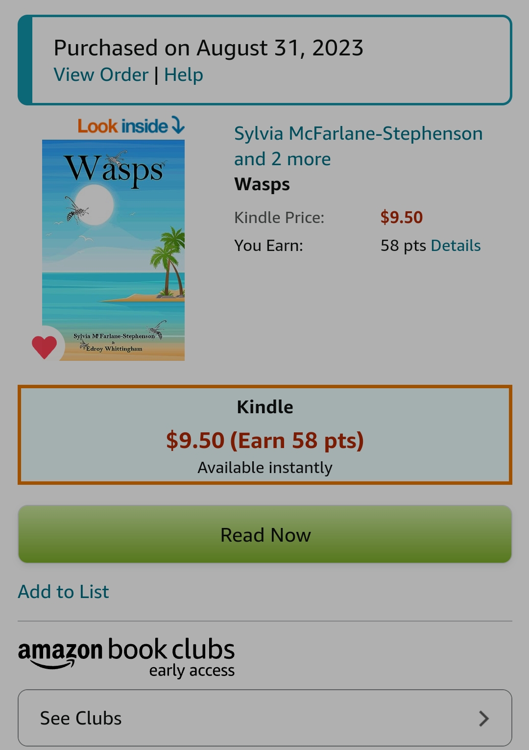Wasps waspsjm@gmail.com https://www.amazon.com/Wasps-Sylvia-McFarlane-Stephenson-ebook/dp/B0CGP4X1HH/ref=mp_s_a_1_1?crid=B1WTMMTGTJ19&keywords=Wasps+Edroy+Whittingham&qid=1693470242&sprefix=wasps+edroy+whittingham%2Caps%2C172&sr=8-1&ref=d6k_applink_bb_dls&dplnkId=d86a40a6-5879-4