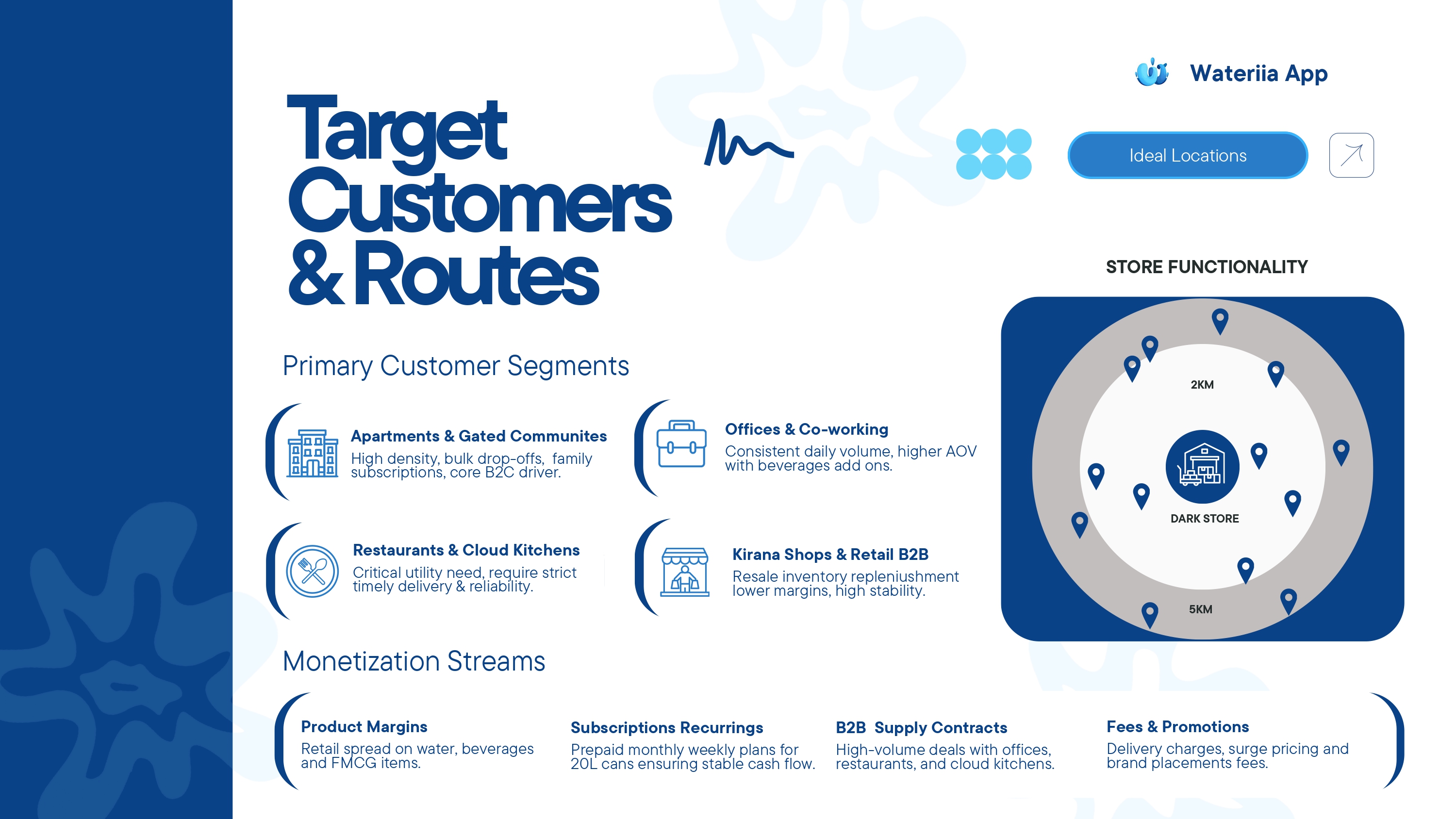 Wateriia plans to establish a nationwide presence by building a dense network of dark stores, empowering local entrepreneurs while ensuring fast and reliable delivery of essential products.