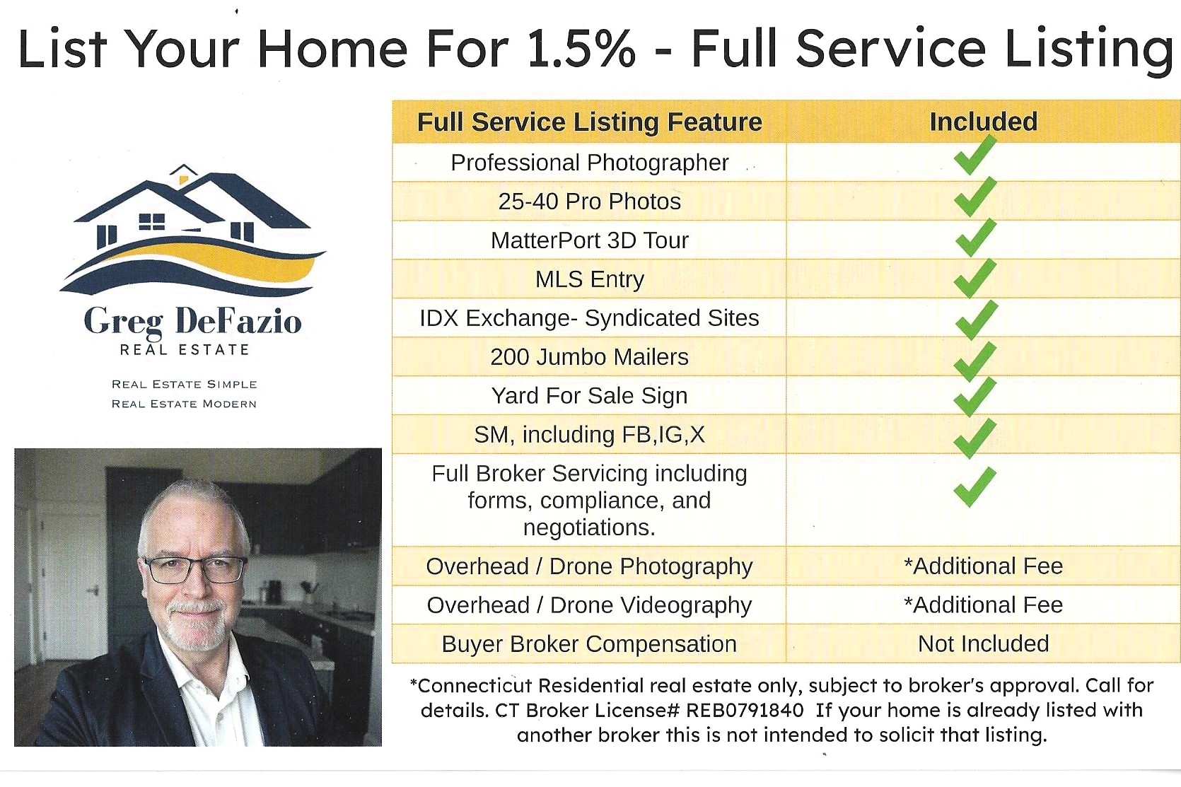 Based in Watertown, Connecticut, Greg DeFazio Real Estate serves Southbury, Woodbury, Oxford, Middlebury, and surrounding communities. Homeowners working with DeFazio often save thousands in listing-side commissions while maintaining a competitive buyer-broker incentive, ensuring strong buyer interest and market reach.