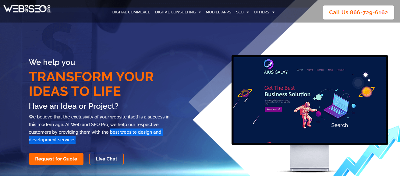 Web and SEO Pro offers exceptional and superb quality plus the best website design and development services for clients. We provide complete web solutions for your brands. Our valued team of designers uses their original imaginative thinking to convert their ideas into dynamic designs. They are native experts in their fields to deliver remarkable results.