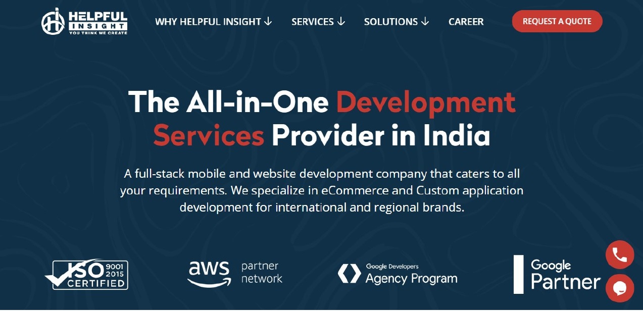 Jaipur, Rajasthan Feb 27, 2023 (Issuewire.com) - Helpful Insight Pvt. Ltd. is an ISO 9001-2015 & "CMMI Certification aspirant" world-renowned web & mobile application Development Company based in India. We cater to the needs of multiple international clients for building a mobile application or creating a stunning website from scratch. We also take up projects to completely revamp your existing mobile application or website, to make it more appealing to your consumers.