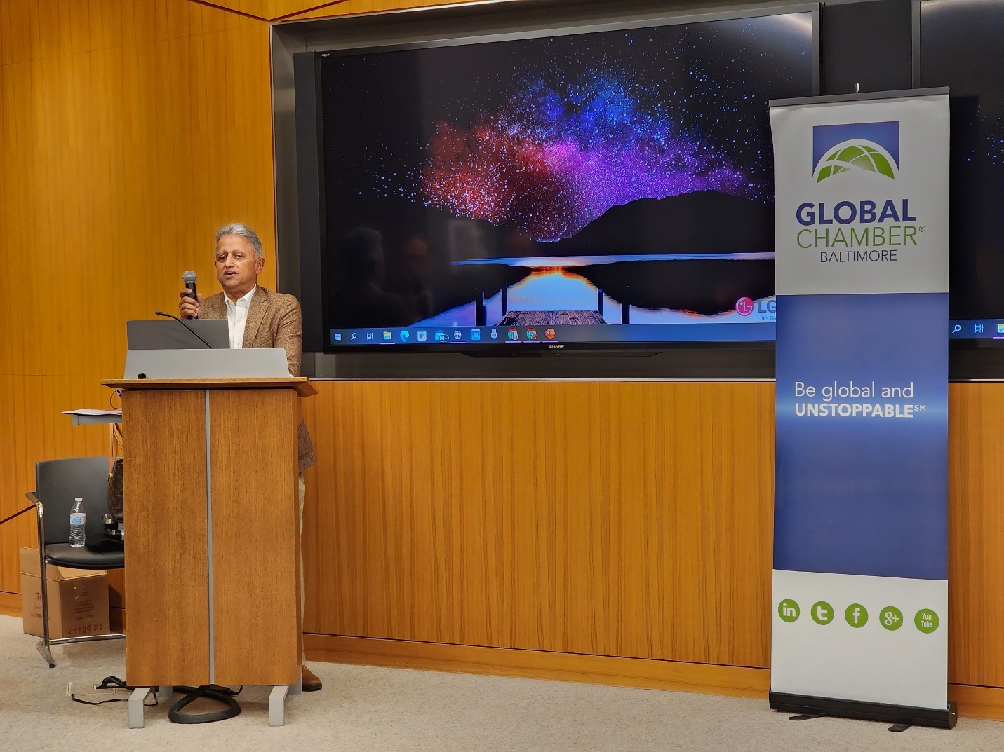 Founder and CEO, Varghese George, was introduced as the newest Advisory Board member, by the Chamber’s Mi Jeong Hibbits. Expressing confidence in the future of global trade and improvements to the supply-chain system, Varghese George recounted his company’s origins in a one-room office on the K Street corridor. There, in the mid-1980s, among Washington’s power brokers, he created a dynamic trading company dedicated to the sale of U.S. products to overseas infrastructure projects.