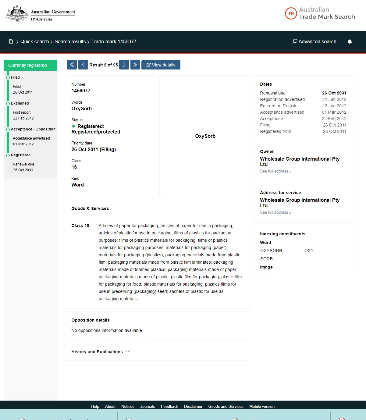 Through an associated business, (Oxygen Absorber Australia), WGI delivers nutritional, food technology, and packaging consultancy to small, medium, and multinational food manufacturers, and food distributors in Australia and also Japan.