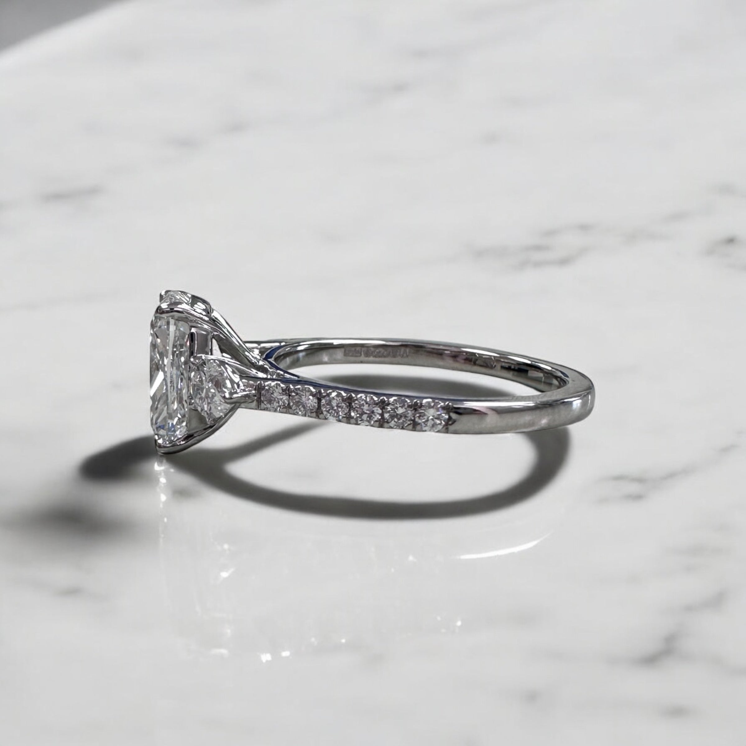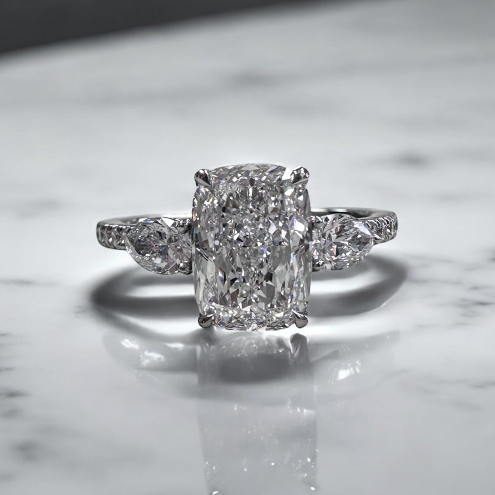 The magnificent long pillow-cut diamond, the elongated cushion-cut diamond, is an elegant, sophisticated twist on the classic pillow shape, differing with a stretched, rectangular silhouette. This shape has exploded in popularity, and for good reason. The true magic of this ring begins with the centerpiece: the long cushion cut.
