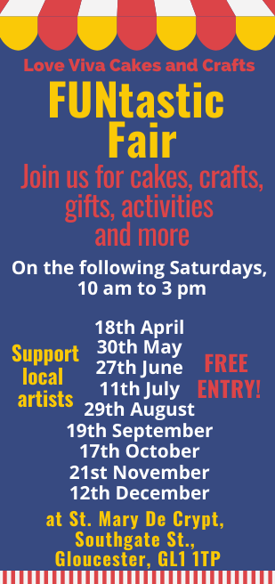 The next event by Love Viva Cakes and Crafts is Spring FUNtastic Fair at St. Mary De Crypt, Southgate St., GL1 1TP on Saturday, 18th April, 10 am to 3 pm.