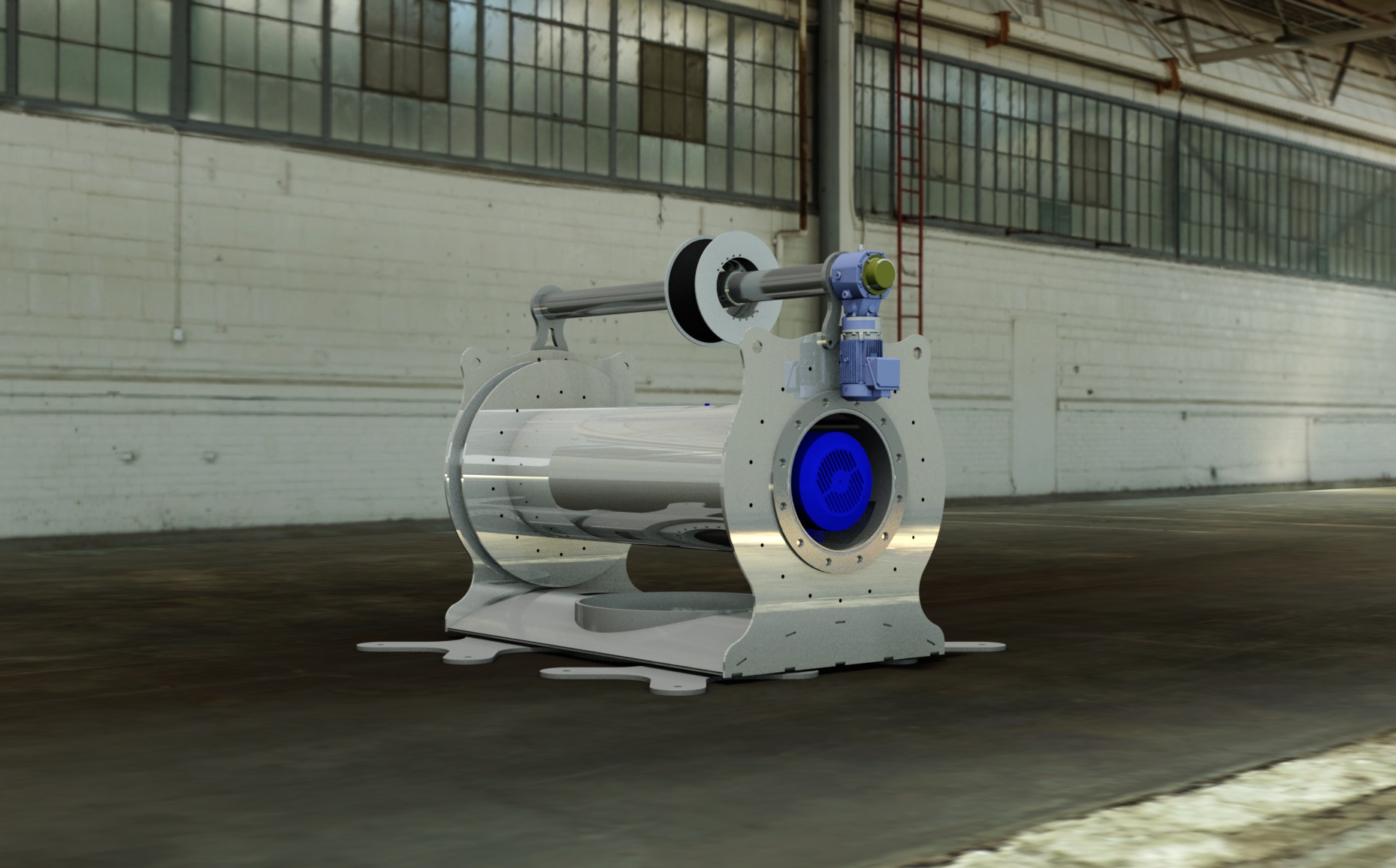 The structure of the winch was designed for manufacture with a slotted and tabbed design, utilizing readily available components, reducing the assembly and manufacturing process from a few weeks to a few days. Additionally, the design features a unique level wind system- capable of being rigged to avoid the constraints of the fleet angle. In addition to its many mechanical innovations, the winch also works in conjunction with an external control cabinet for use with multiple winches and to control numerous mechanical components.