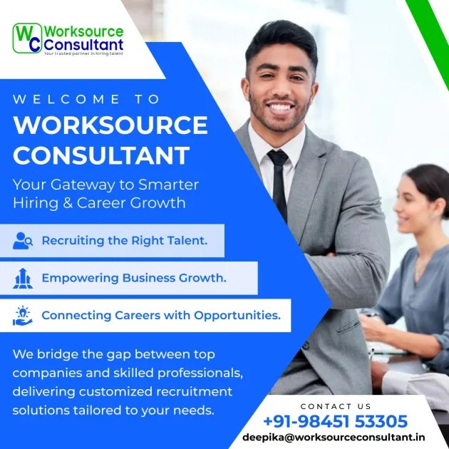 Worksource Consultant workconsultant39@gmail.com +91 98451 53305 WORKSOURCE CONSULTANT, Sakti Statesman Building, #301, 3rd Floor, 34/1 7th Bengaluru, Karnataka 560103 https://worksourceconsultant.in/