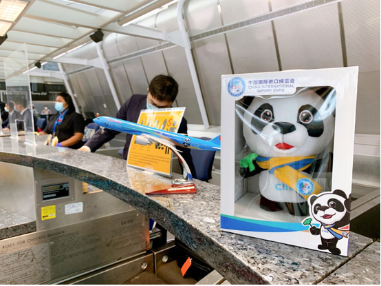 On Sept. 9 local time, the aircraft departed from New York for Shanghai as China Eastern Airlines flight MU588. After arriving in Shanghai, the 115th passenger who came out of the airport received loving gifts from China Eastern, including a model of the CIIE-themed airplane and a toy giant panda, Jinbao, the mascot of the CIIE. The passenger was also invited to take a picture with the special aircraft to mark the occasion.