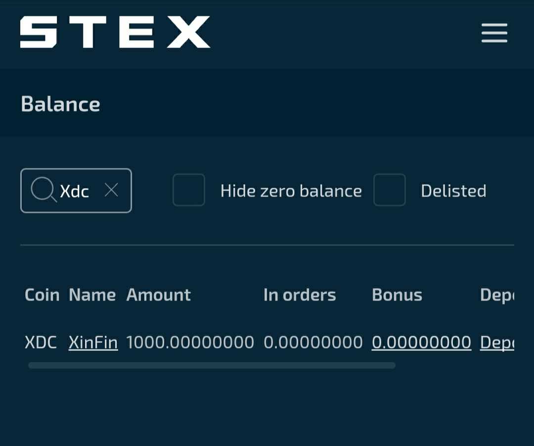Deposit XDC on STEX ExchangeXinFin Utility Token XDC and XDCEXinFin Tokens XDCE (ERC20 Protocol) and XDC (XDC01 Protocol)