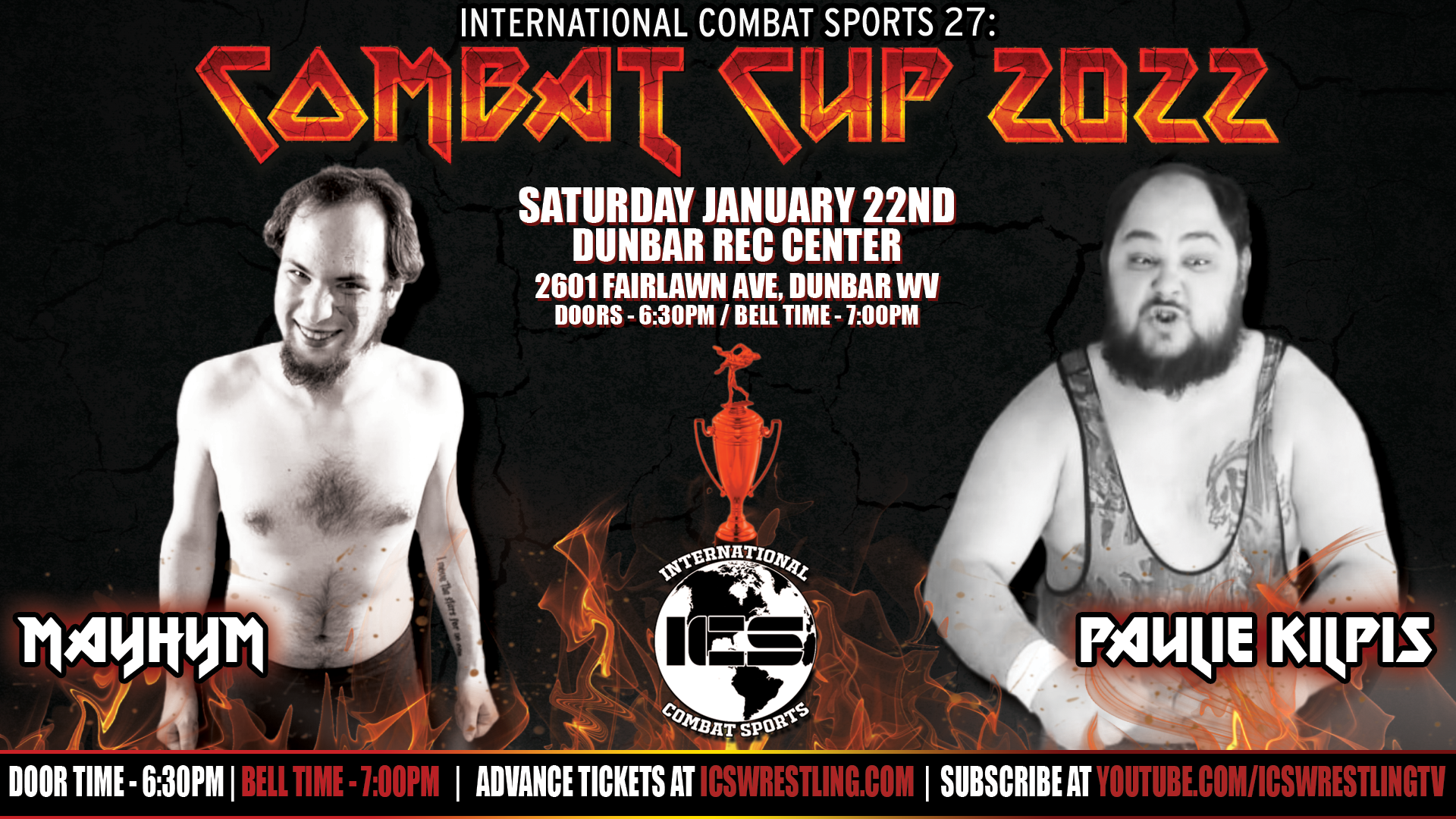 The 2022 Combat Cup is scheduled to take place on Saturday, January 22nd at The Dunbar Rec Center in Dunbar WV, and will feature 8 professional wrestlers competing in a single-elimination tournament. The preliminaries and semi-finals will be contested as three five-minute rounds, with the finals being contested as four five-minute rounds. The winner of the tournament gets to take home the Combat Cup trophy, as well as becoming the number one contender for the ICS Grand Championship, which grants them a match against the champion at the next event.