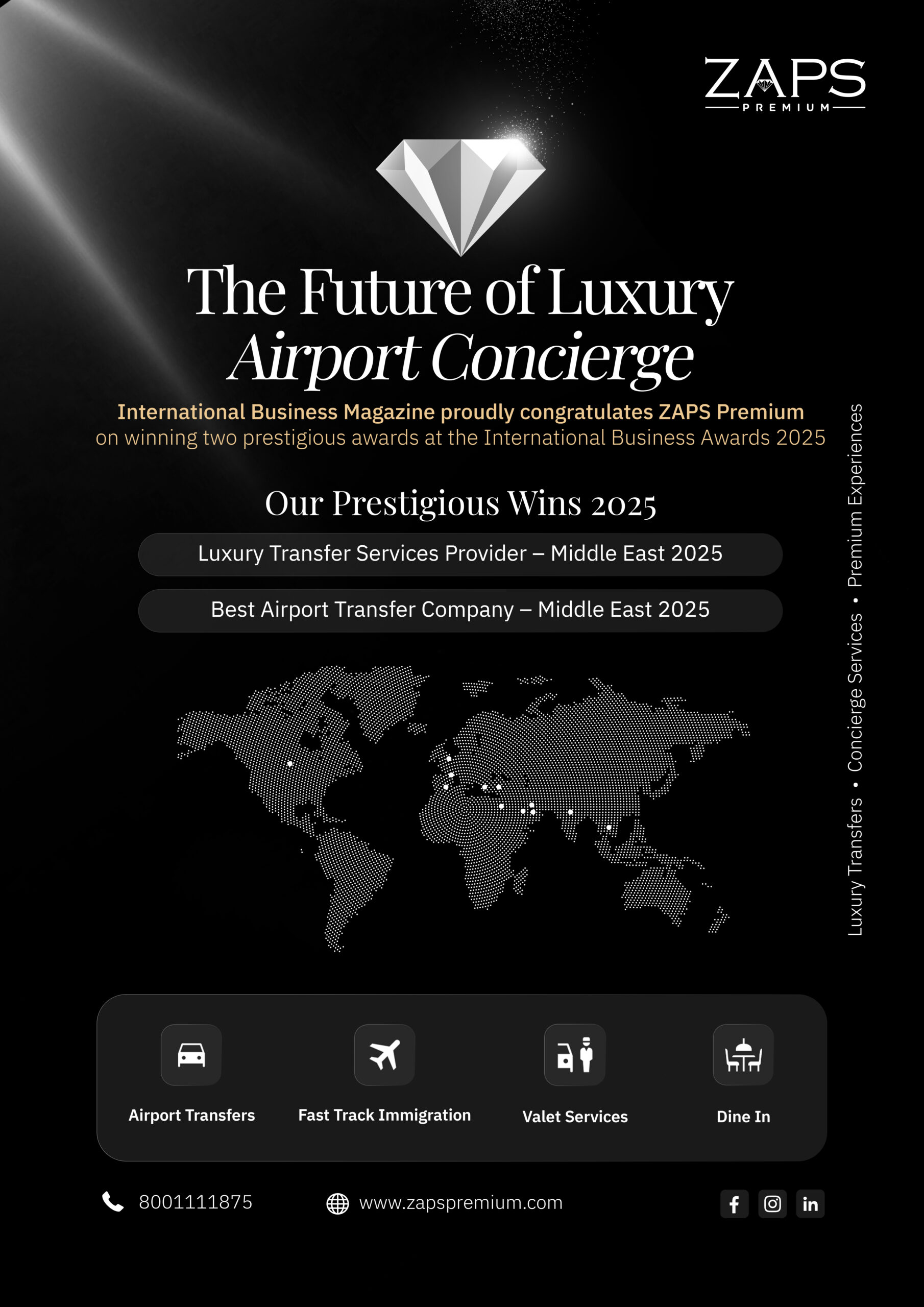 These accolades were presented by International Business Magazine, underscoring ZAPS Premium’s leadership in redefining airport transfers, luxury mobility, and lifestyle concierge solutions across the Middle East and beyond.