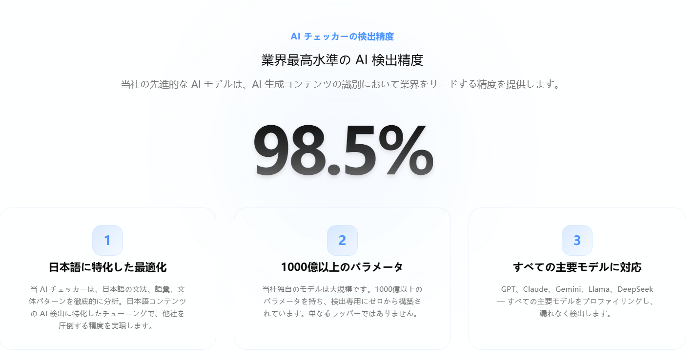 3. Advanced Algorithms to Eliminate "False Positives" Traditional English-centric detection tools frequently misjudge properly written, human-generated text in complex languages (like Japanese) as "AI-generated." Content True is specially tuned to understand complex grammar and textual unpredictability (perplexity), ensuring that genuine human creators are fairly evaluated and protected from false accusations.