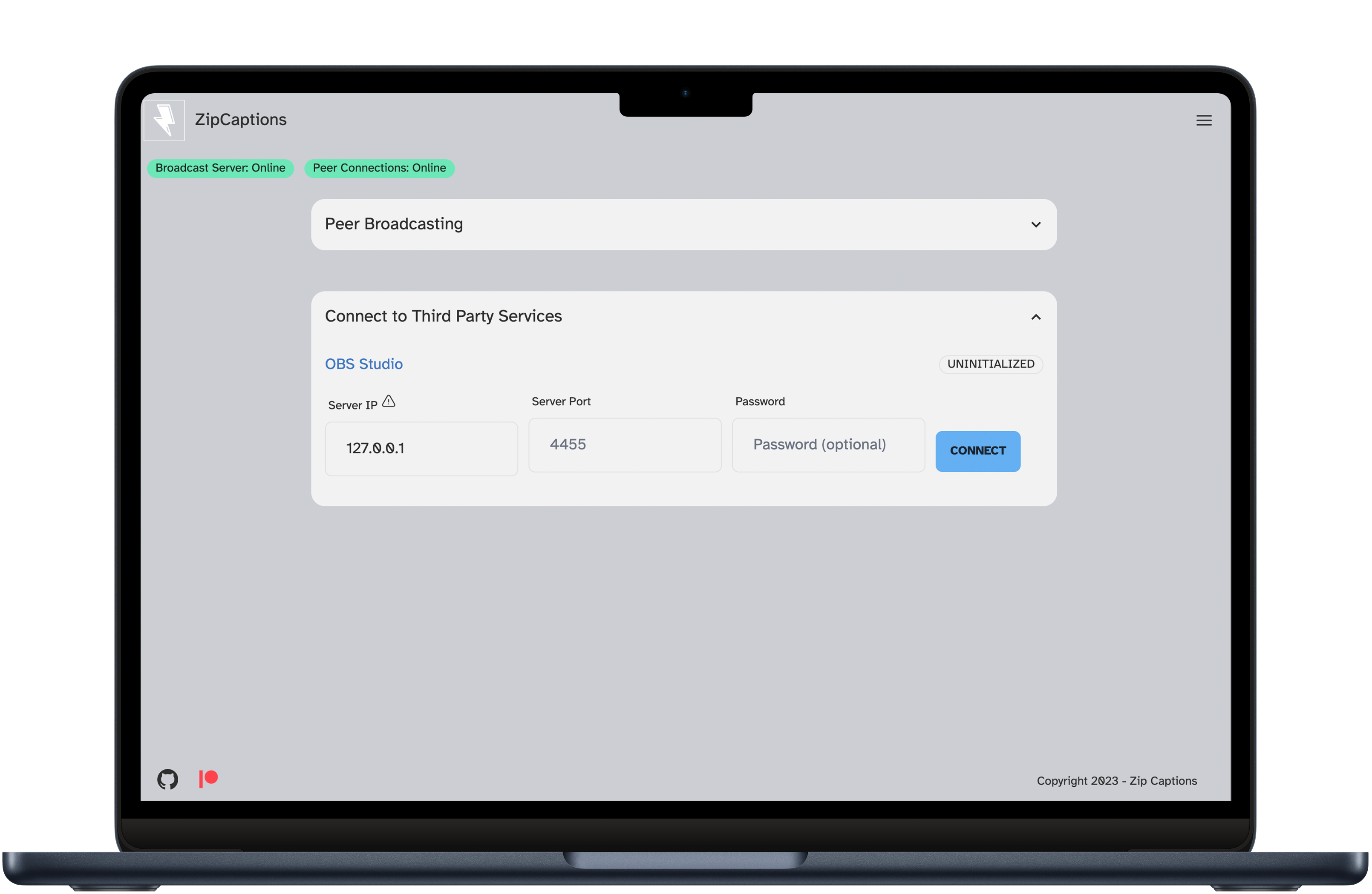 The feature which makes Zip Captions stand out however is the ability to broadcast the captions to other devices. By allowing captioning to take place on a computer dedicated to receiving the audio and captioning, and then sending the results to users personal devices, Zip Captions provides more accurate captioning right on the users devices, in a far more discreet manner, whether they are viewing remotely or sitting in the audience. This same broadcast technology can be used to caption live streams to Twitch and YouTube Live created in the OBS software.